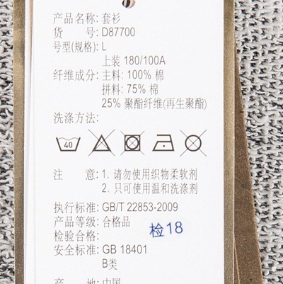 (4)清洗时不可使用漂白剂;