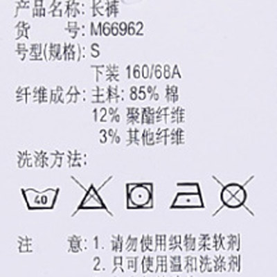 (4)清洗时不可使用漂白剂;
