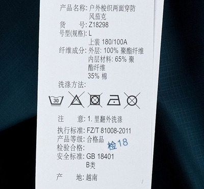 (4)清洗时不可使用漂白剂;