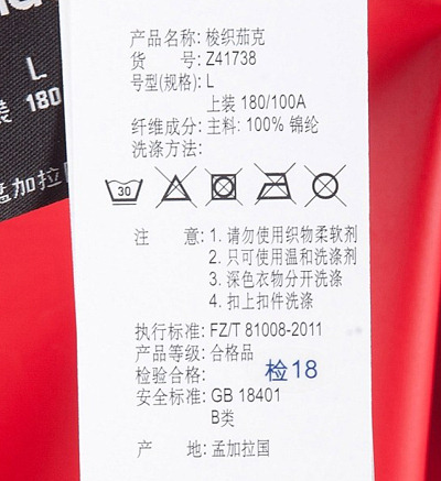(4)清洗时不可使用漂白剂;