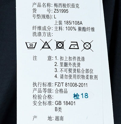 (4)清洗时不可使用漂白剂;