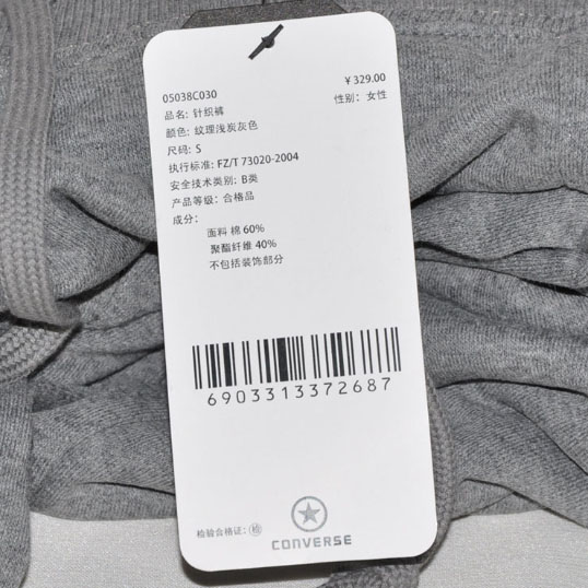 匡威针织裤纹理浅炭灰色女装