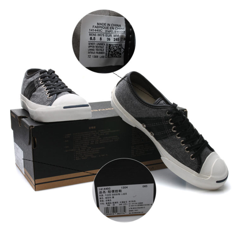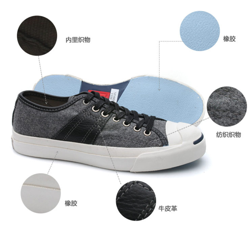 匡威JACK PURCELL炭灰色/黑低帮绑带帆布中性鞋