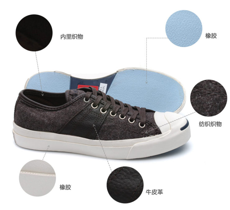 匡威JACK PURCELL深咖啡色低帮绑带牛皮中性鞋