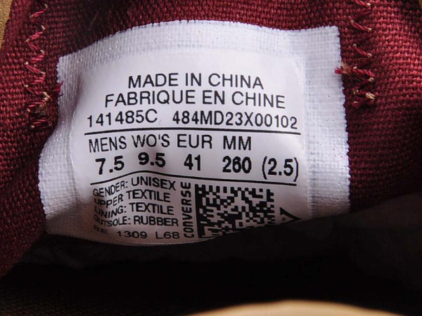 匡威141485-纺织织物面料,鞋面上有抓绒效果,鞋身包边和LOGO都选用PU材质,很有质感