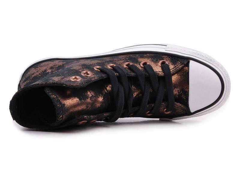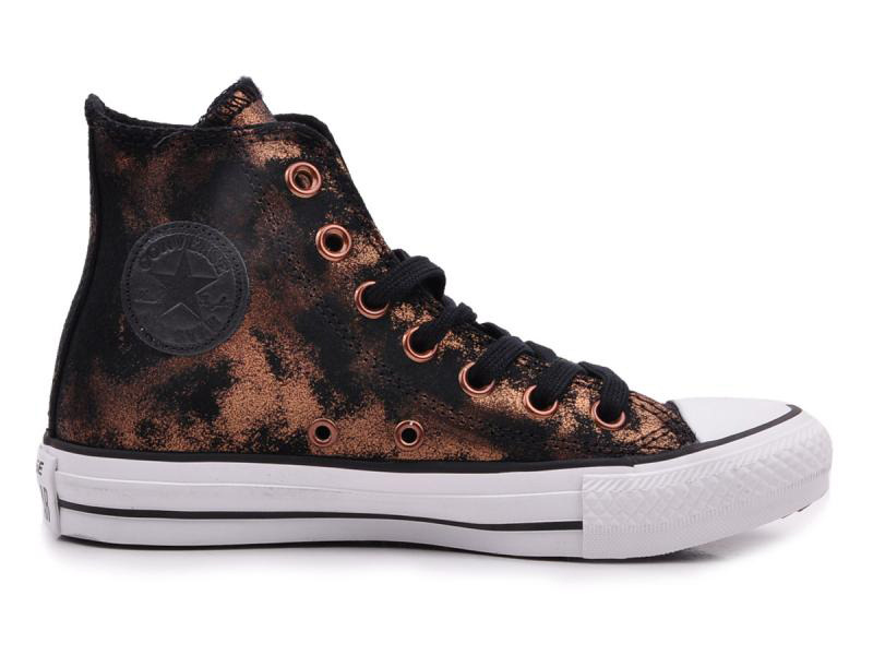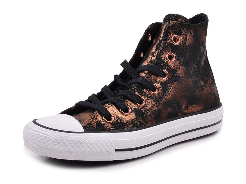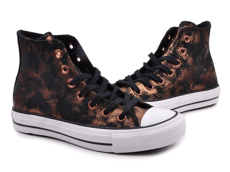 匡威ALL STAR金色/黑高帮绑带牛皮女鞋