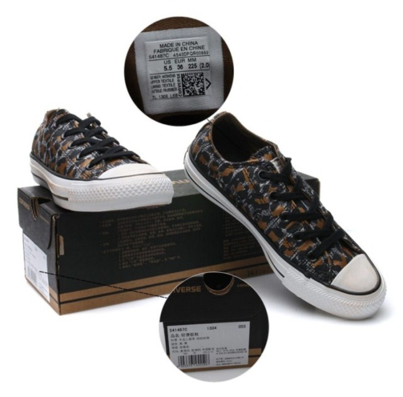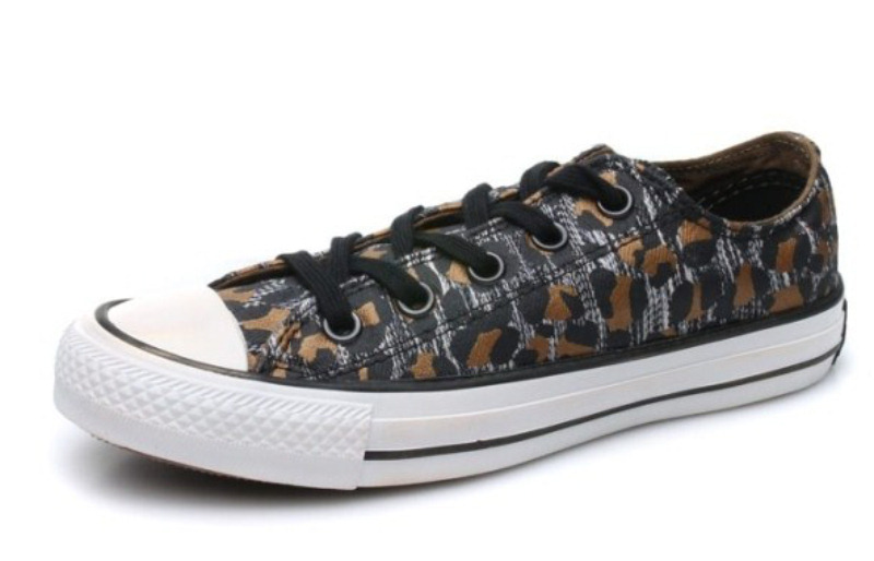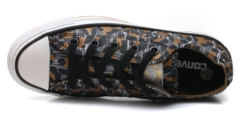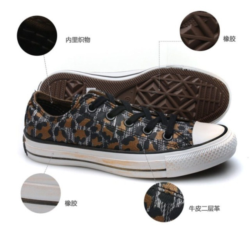 匡威541487-纺织织物,豹纹图案的印刷,鞋身侧边的拉链,鞋身LOGO上的不规则烫金,时尚感十足